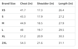US SIZE CHART(IN)